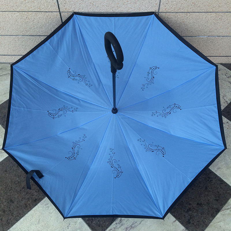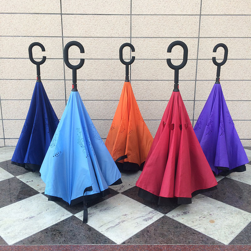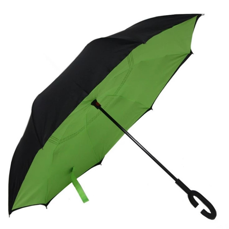 - Tay cầm Ô dù ngược kiểu chữ C nên có thể dễ dàng khi đang sách đồ hoặc sử dụng điện thoại 2 tay, bê đồ đạc hay bế trẻ em.