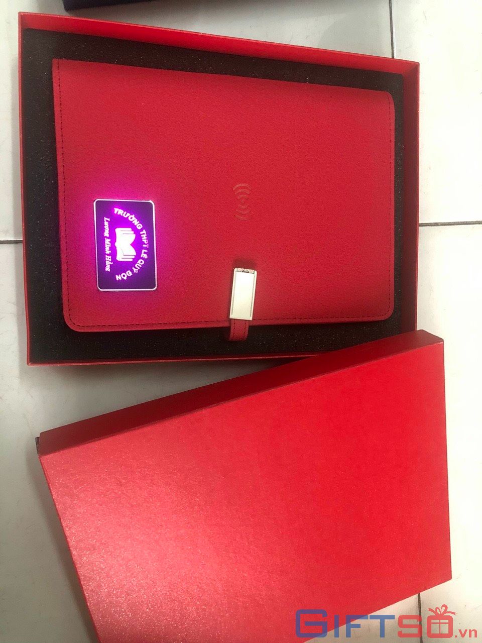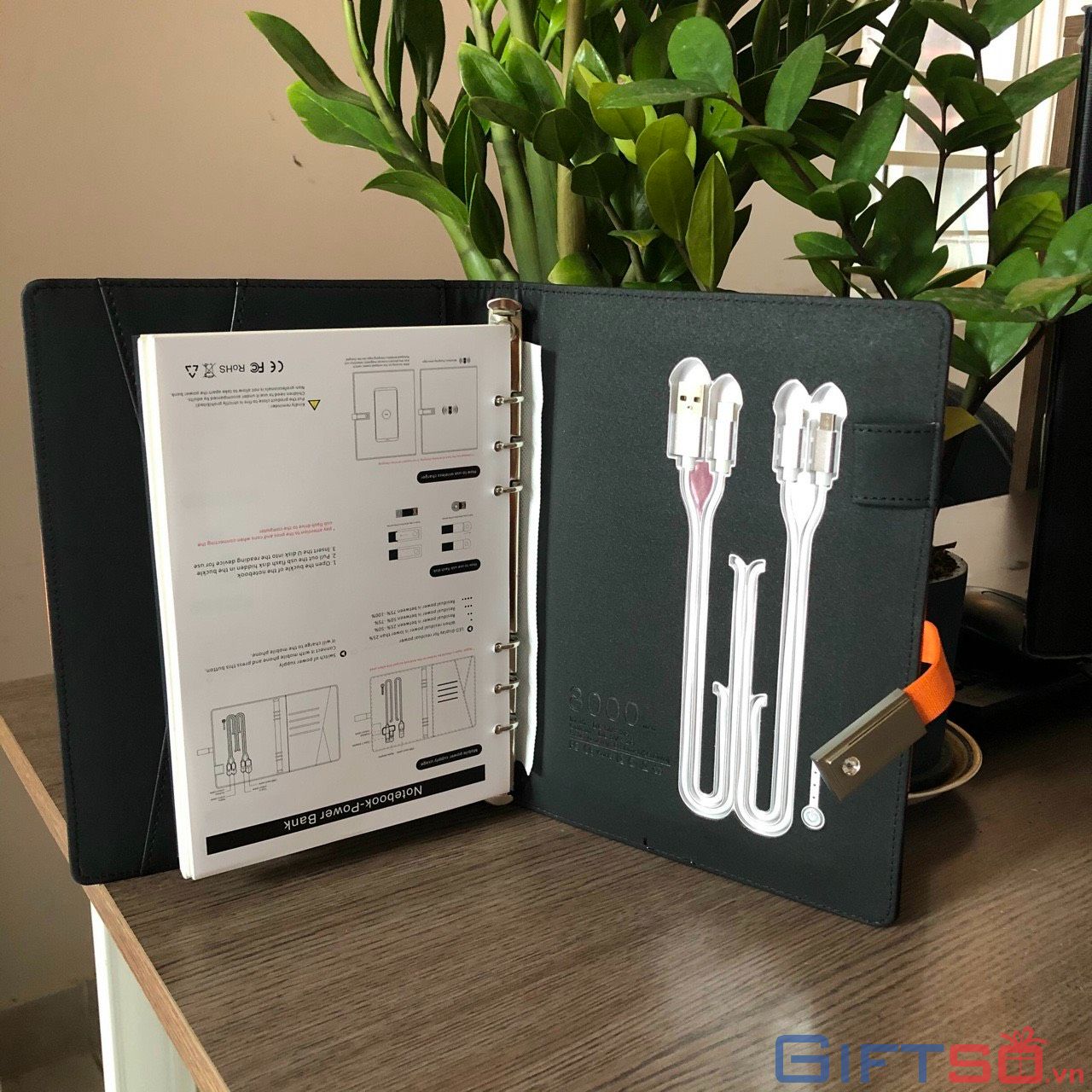 Sổ Tích Hợp Pin Sạc 8000mAh và USB 16G, giúp bạn sạc điện thoại, máy tính bảng và các thiết bị điện tử khác mọi lúc, mọi nơi. Điểm nổi bật của sản phẩm chính là đèn LED được in logo, giúp tạo nên một món quà độc đáo và gây sự tò mò cho người nhận.